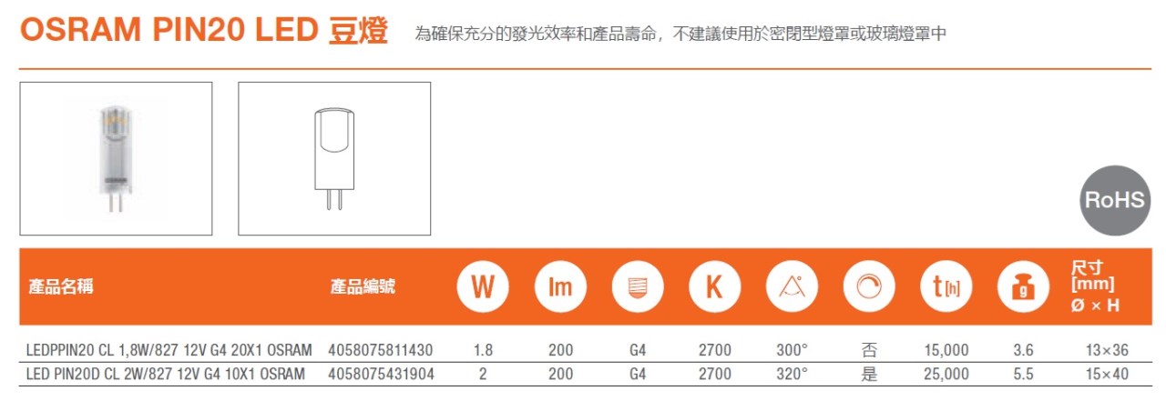 A. LED 1.8W /12V/黃光豆燈(不可調光)